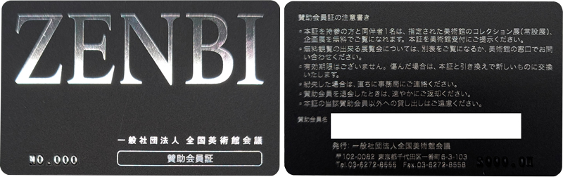 無料観覧可能な美術館の受付窓口で賛助会員証を提示することで、1枚につき2名が無料入館いただけます。詳しくは「賛助会員証による無料観覧可能な美術館一覧」をご覧ください。